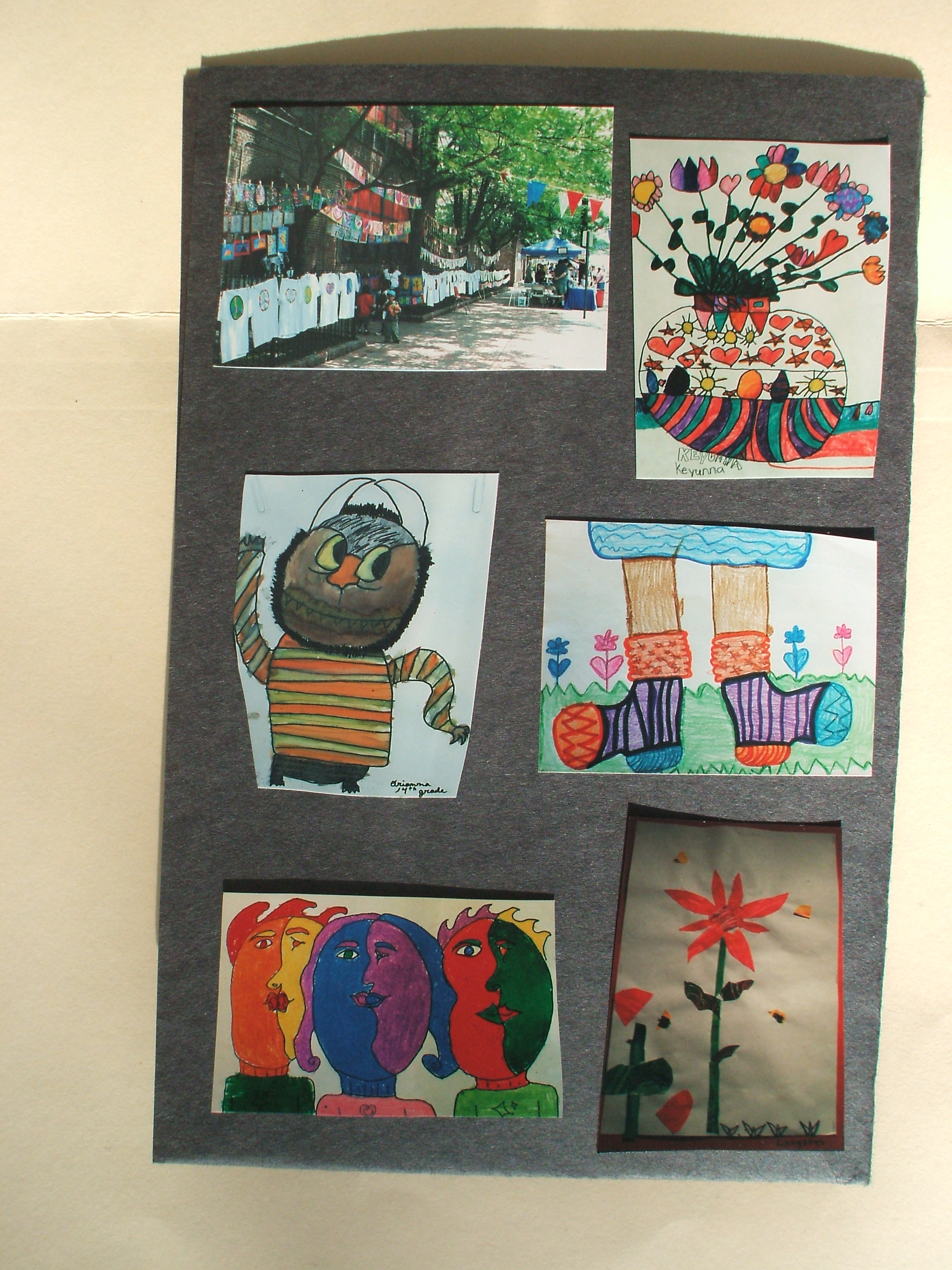 We’ve divided the 2010 Poster into quadrants. Look at the artwork inspired by art teachers from the 24 public, charter and faith-based schools! Do you see the bird’s eye view of a person with knock-out shoes and a composite of cubist faces Picasso never could have painted so prettily? Look at the end-of-year art show held outdoors.