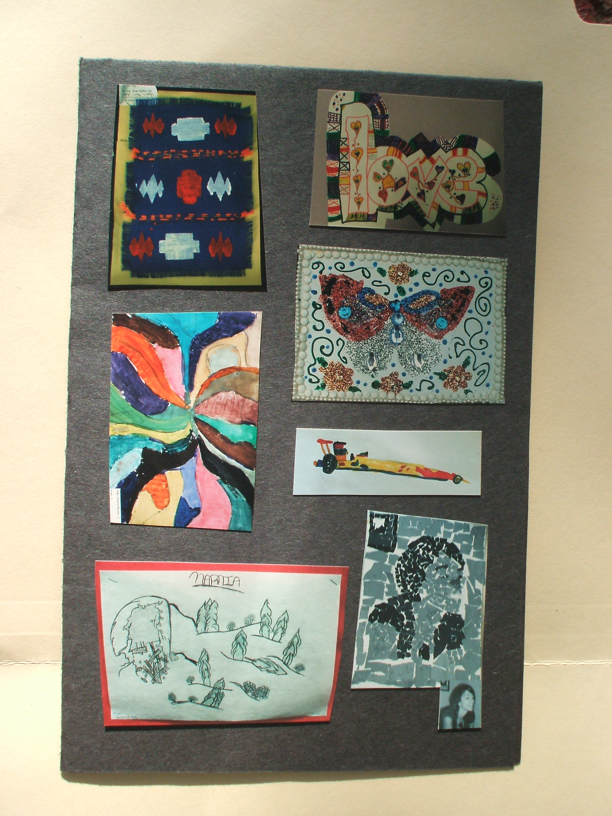 Included in the 4th quadrant is a racing car, a remarkably true likeness in a collage (the picture of the person is attached at the bottom), a Navaho blanket and a Narnia scene.