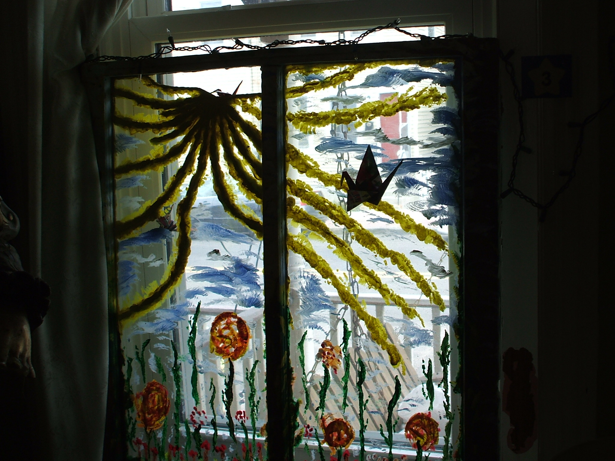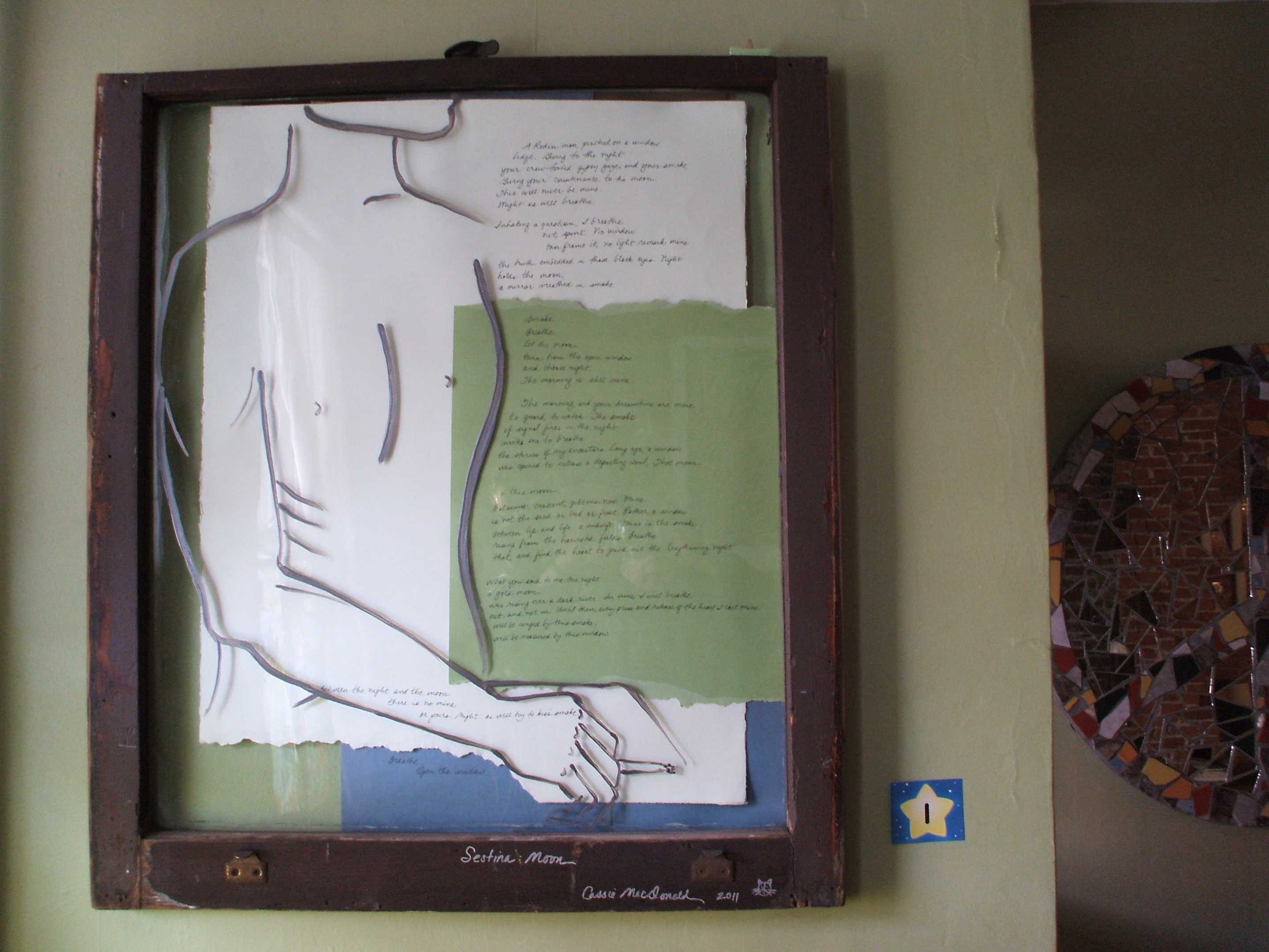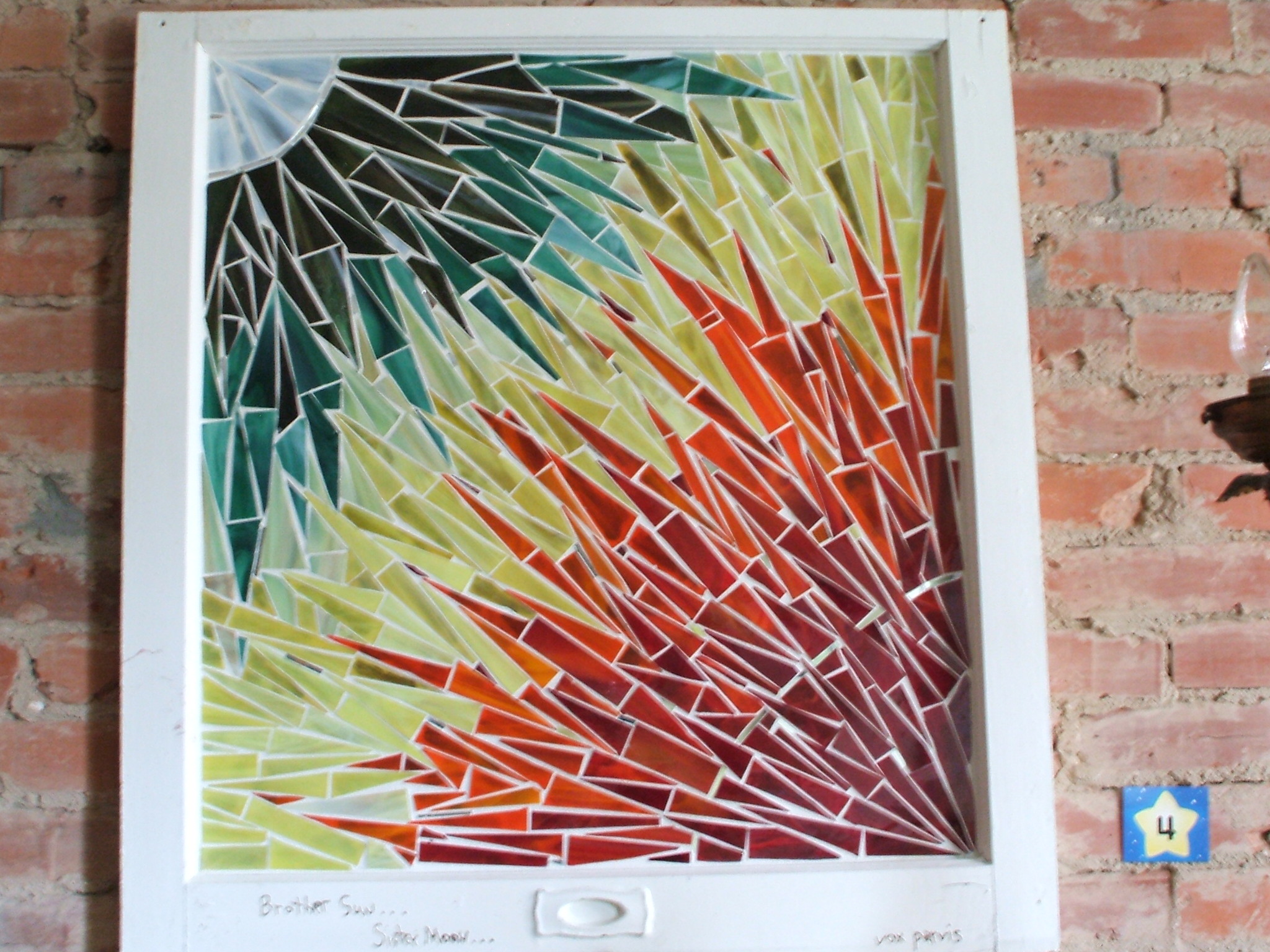 When Cassie MacDonald, the hearth keeper of Brigid’s House of the Sacred Heart Peace Community in Waterfront South, decided to replace all the old windows in her rowhouse in Camden with new ones, she asked artist friends to paint the old windows and donate them to a fundraiser. The fundraiser successfully raised enough money for her to build a real hearth in her rowhouse. Here are some of the decorated windows. Enjoy!
