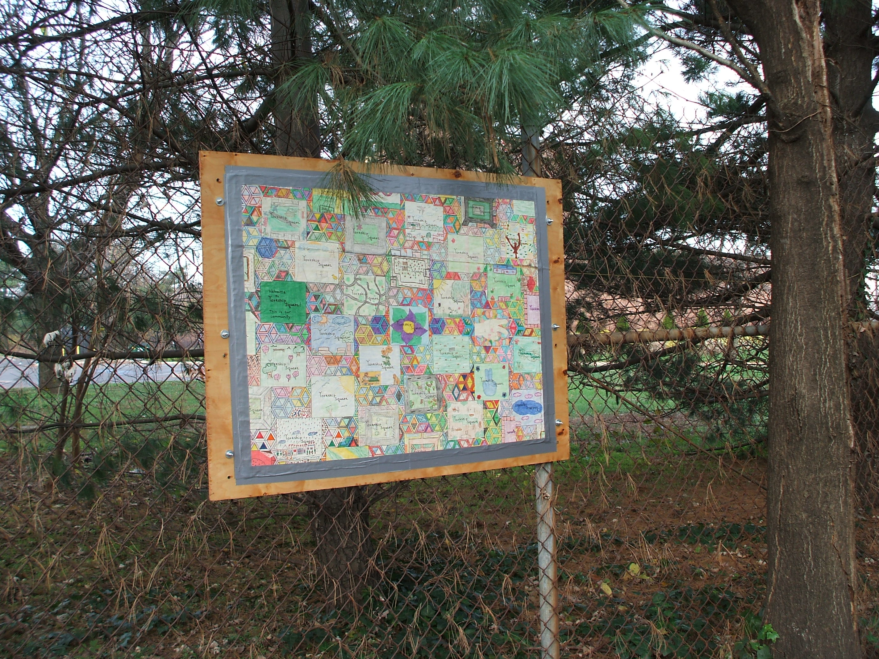 Towards that end I laminated a mural by Mr. Blake’s 8th grade class at Yorkship School for outdoor display on my chain linked fence – behind the Weeping Cherry tree. See how it humanizes the environment!