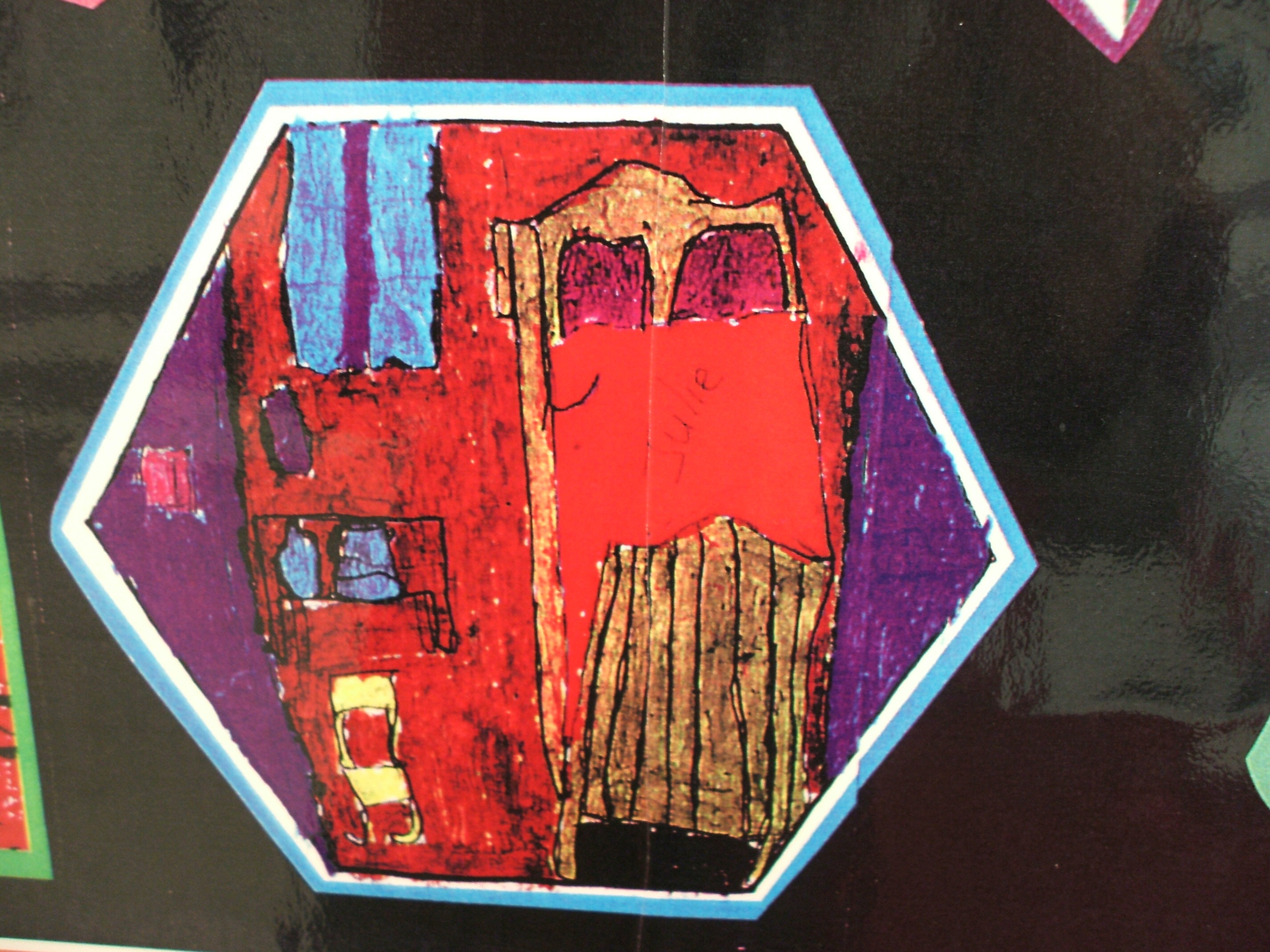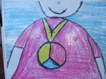 “I mixed the calendar art from the kids with pieces from well-known artists. There was this wonderful peace figure, with a cross and a peace sign, but no head.