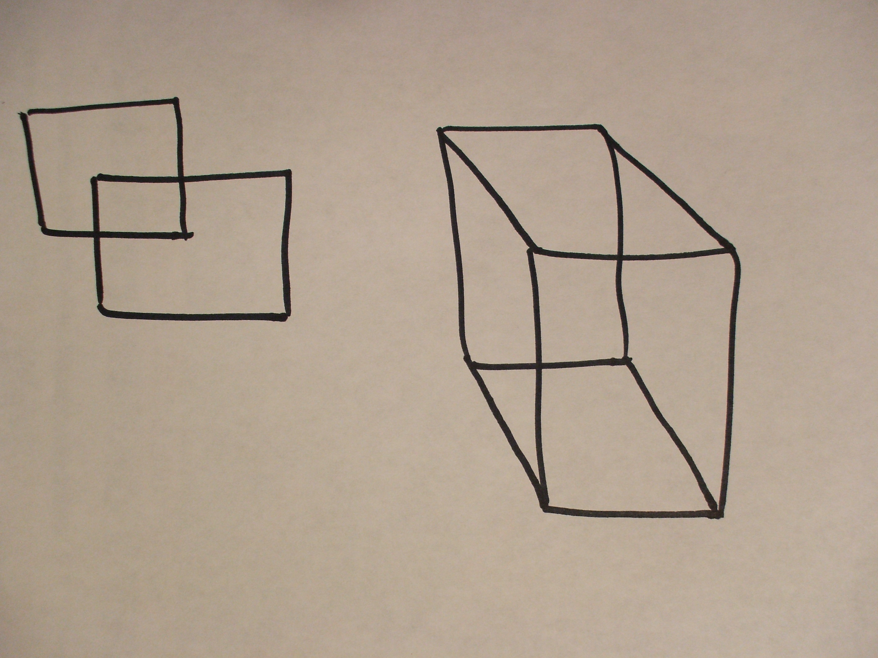 Then you draw the diagonal lines which connect one square to another and suddenly it’s magic! It’s not just flat anymore. From there we talk about how a painting is made on a flat canvas. How do artists do this?”
